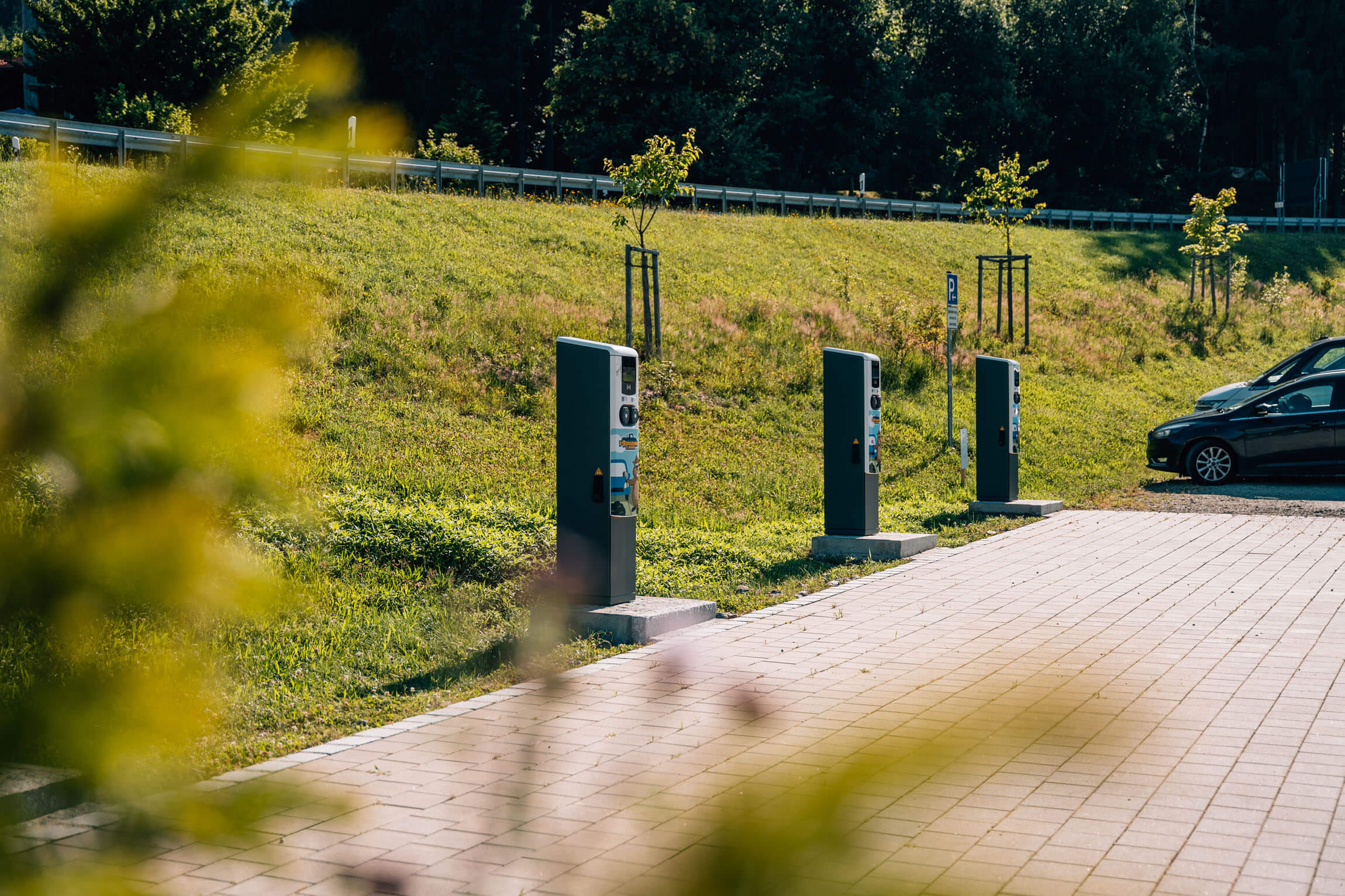 Nachhaltig unterwegs? Kein Problem – auf unserem Parkplatz stehen euch auch Ladesäulen für Elektroautos zur Verfügung.